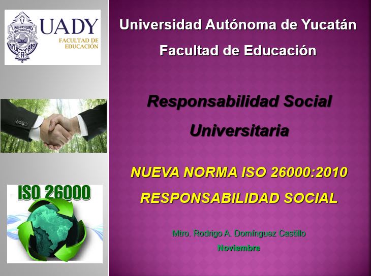 Este recurso es sobre la Norma ISO 26000, la cual proporciona orientación sobre los Principios y Materias Fundamentales de Responsabilidad Social que ayudan a integrar un comportamiento socialmente responsable en cualquier organización del sector privado, público y sin fines de lucro.